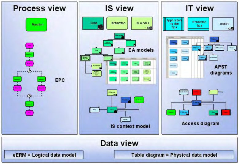 - ایجاد ارتباط بین فرآیندها، نقشها، سیستمها و دادههای مرتبط در یک ساختار جامع